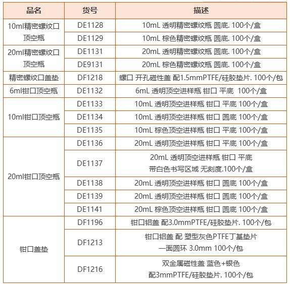 頂空瓶有著不同的容量規(guī)格,例如6ml,10ml,20ml,40ml等等;