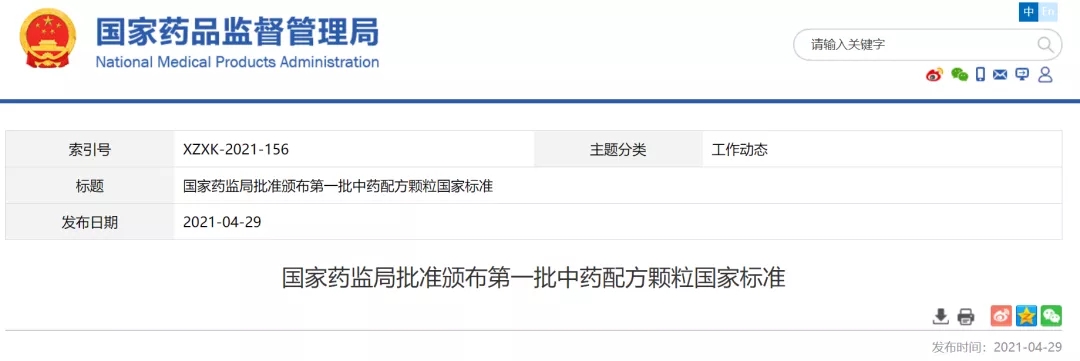 2021年4月29日,國家藥品監(jiān)督管理局批準(zhǔn)頒布了首批160個配方顆粒品種國家標(biāo)準(zhǔn),涉及約1/3的常用中藥材品種,設(shè)置6個月的過渡期,于2021年11月1日起正式實施。這標(biāo)志著中藥配方顆粒試點工作的結(jié)束,備案管理實施在即。